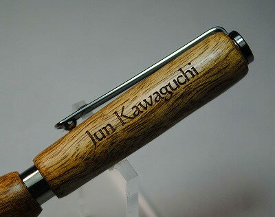 決済の画面で「備考欄」がありますので、御希望の彫刻仕様を記載して下さい 下記は 梨の木ボールペンの彫刻例です。