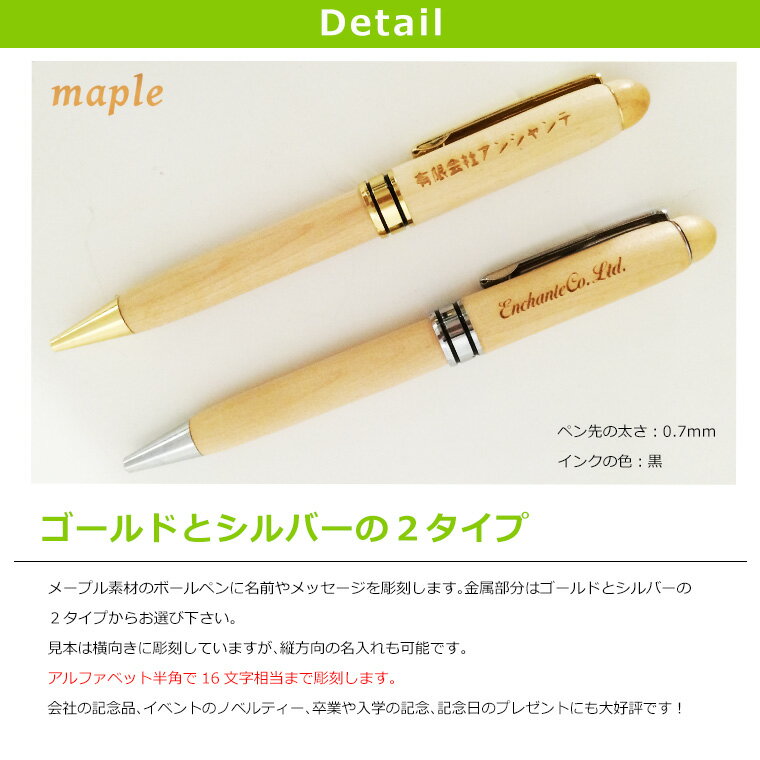 商品について 商品名 メープル素材名入れボールペンギフト 商品について 温もりのあるメープル素材のボールペンです。