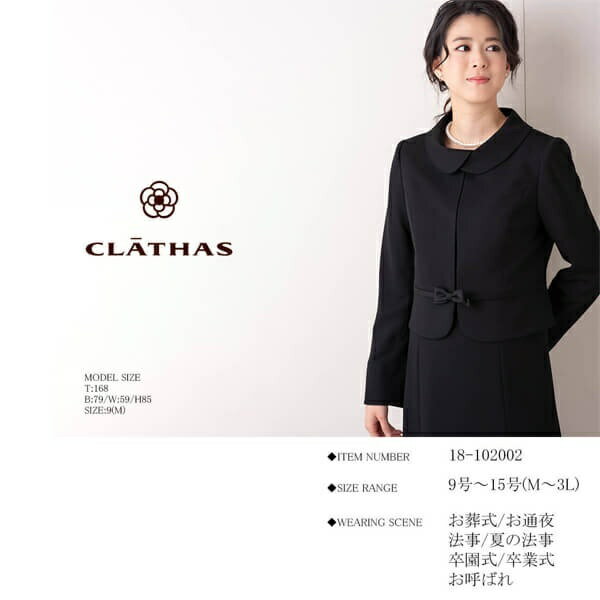 ■素材: 【モデル】身長168/バスト79/ウエスト59/ヒップ85 着用サイズ9号【ジャケット】表地:ポリエステル 100%別布:トリアセテート 79% ポリエステル 21%裏地:ポリエステル 100%【ワンピース】表地:ポリエステル 100%裏地:ポリエステル 100% ■お手入: ドライ >>商品のお取り扱い方法 ■原産国: 中国製【クレイサス】【ブラックフォーマル】立体的なロールカラージャケットアンサンブル/レディース/喪服/クレイサス(ラブリークィーン)ブラック画面上と実物では、多少色具合が異なって見える場合がございます。